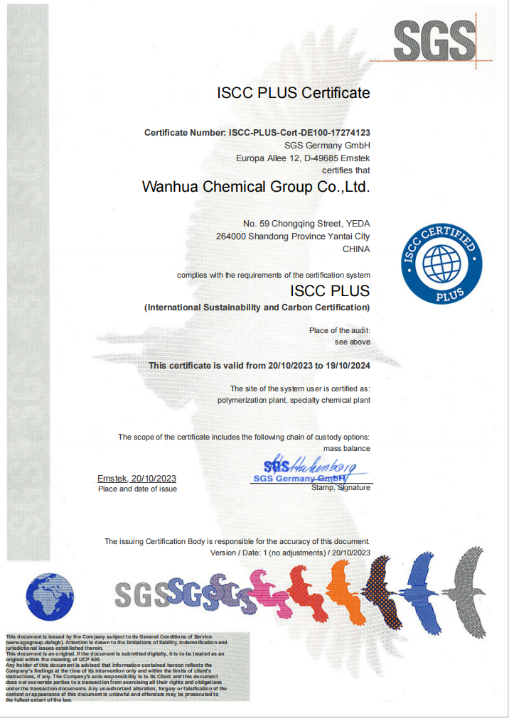 近日,成人论坛 MDI、TDI、IPDI、PMMA、TPU和生物基聚醚六款产品获得国际可持续发展和碳认证(ISCC PLUS ),这意味着公司已具备向客户供应含可再生、可循环原料产品的能力,作为践行可持续发展的又一实践,将进一步支持众多下游行业的绿色低碳发展。