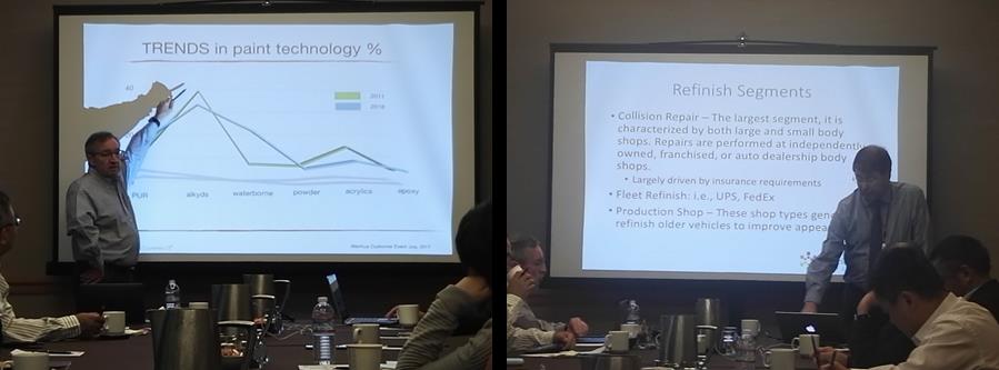 此次美国西雅图之行,我们有幸邀请到了美国涂料协会的Herbert Irish先生以及成人论坛 涂料行业顾问Volker Mirgel先生。Irish先生是美国涂料协会的资深委员,对涂料行业的环保安全及质量监管要求有很深的研究。此次报告中,Herbert先生为大家介绍了全球涂料行业概览及全球经济发展对涂料行业的影响。同时,针对大家比较关心的美国涂料行业的发展概况、机遇挑战,法律法规,投资注意事项,风险管理等要求也做了一个详细的阐述。Volker Mirgel先生则从全球涂料行业的发展趋势角度着手,深刻剖析了涂料行业的发展方向及中国涂料行业的发展预测。大家纷纷表示,通过此次报告,对涂料行业的发展有了一个清晰的认识,对于未来企业的发展有了更宽广的思路和见解。