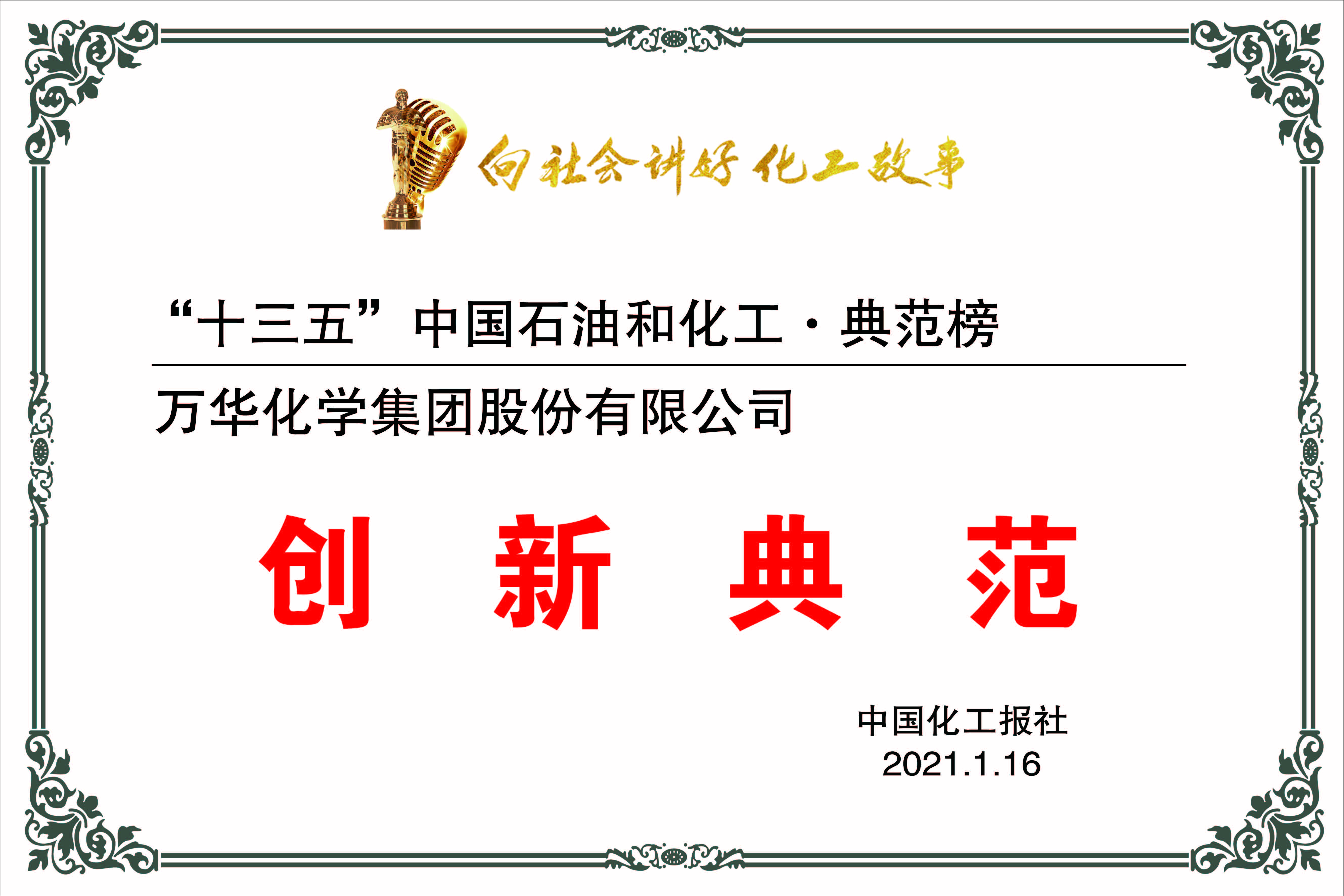“十三五”以来,成人论坛 坚持以技术创新为核心,持续优化产业链供应链创新链体系,围绕石化—聚氨酯—精细化学品产业布局,实施了多个项目,从以MDI为主的聚氨酯企业,转型为三大板块协同高效、融合发展的现代化企业,并成功研发出第六代MDI制造技术、PO/SM、PC、3D打印、可降解塑料等前沿材料,新技术产业化成果丰硕。