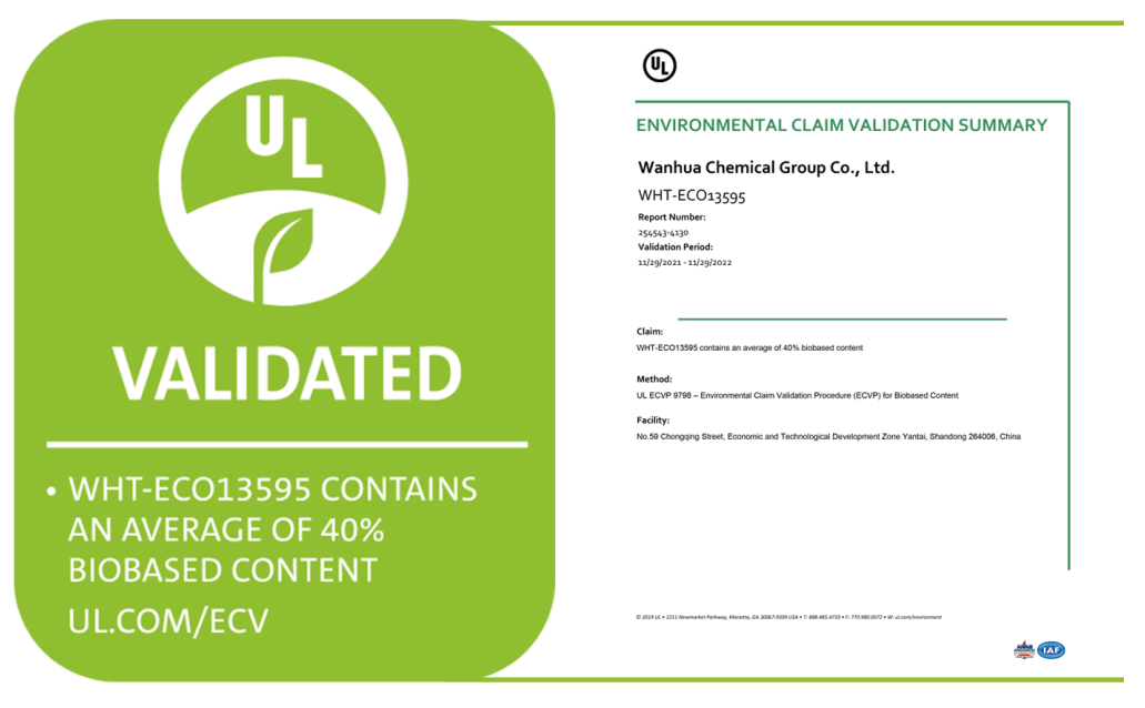 近日,成人论坛 生物基TPU产品WHT-ECO13595获颁UL绿色环境声明验证证书,这是业内首个获得UL认证的生物基TPU产品。该认证的取得,不仅彰显了成人论坛 生物基TPU产品的创新实力,更是对成人论坛 致力于推动全价值链低碳的高度认可。