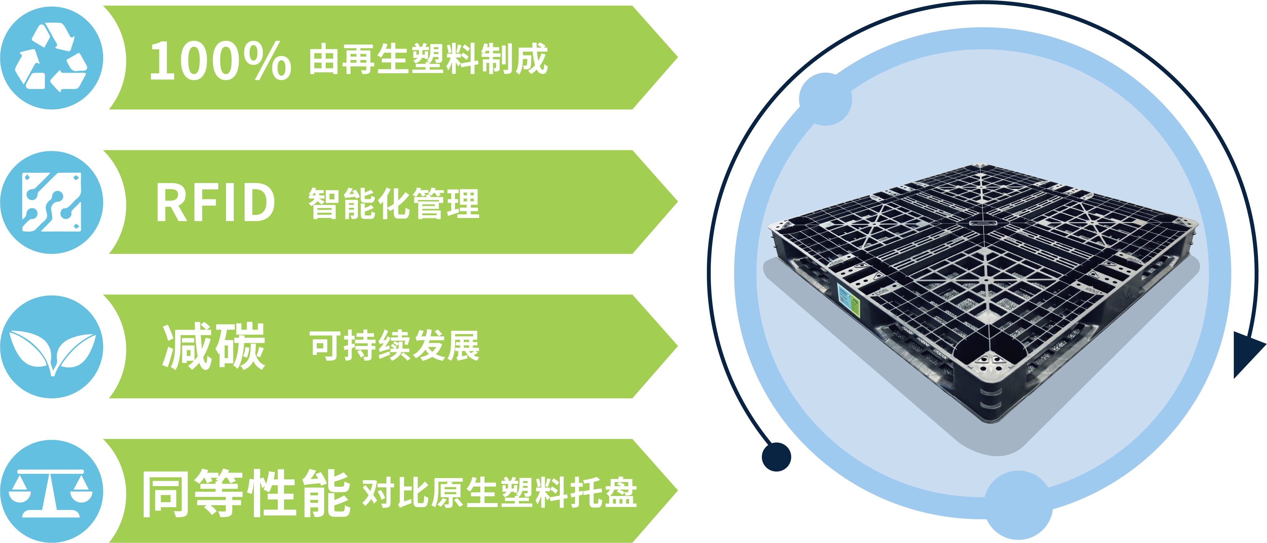 再生塑料托盘实现了对废旧塑料的回收和再生过程进行溯源数据管理,用户可凭唯一ID编码查看托盘生产原料和来源等详细信息,同时通过完善的塑料包装分类、回收、处理及再生管理标准规范,实现塑料的再生利用,形成废旧塑料回收到再生产品生产制造的产业链闭环模式。